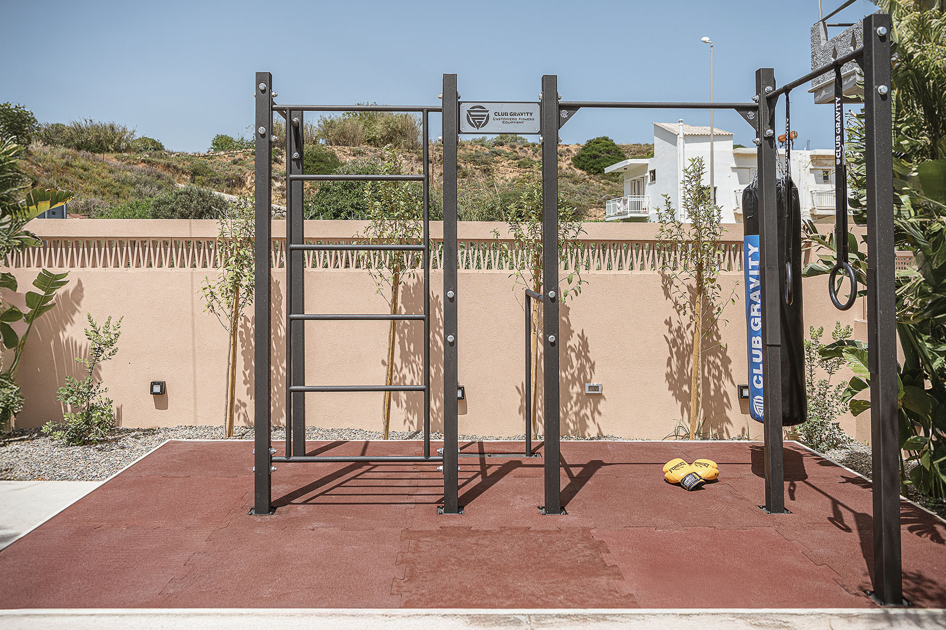 Is there any other better place for you to spend your summer vacation rather than by the pool and under the sun? The 800 sqm exterior of our ultimate villa is complemented by a 50 sqm heated swimming pool with a children’s section, a BBQ area, a living area, and many places to sit and dine. The saltwater swimming pool in the exterior area with the crystalline water is the perfect spot for you to have a dip, soak up the Cretan sun, and feel the summer breeze. Curl up in the lounge area or enjoy your al fresco breakfast and your hot cup of coffee from the private terrace, watching the world wake up! Serve homemade meals in the BBQ area that is on the balcony out of the kitchen, indulge in a midday fiesta, or even enjoy a glass of wine under the starlit sky with your loved ones in the sitting area. For those who want to keep up with their fitness routine, there is plenty of outdoor gym equipment so that you can catch up with your hobbies even when you are on vacation. Safe to say that there is no need for you to worry about a parking space, the villa offers a private area for 3 cars.