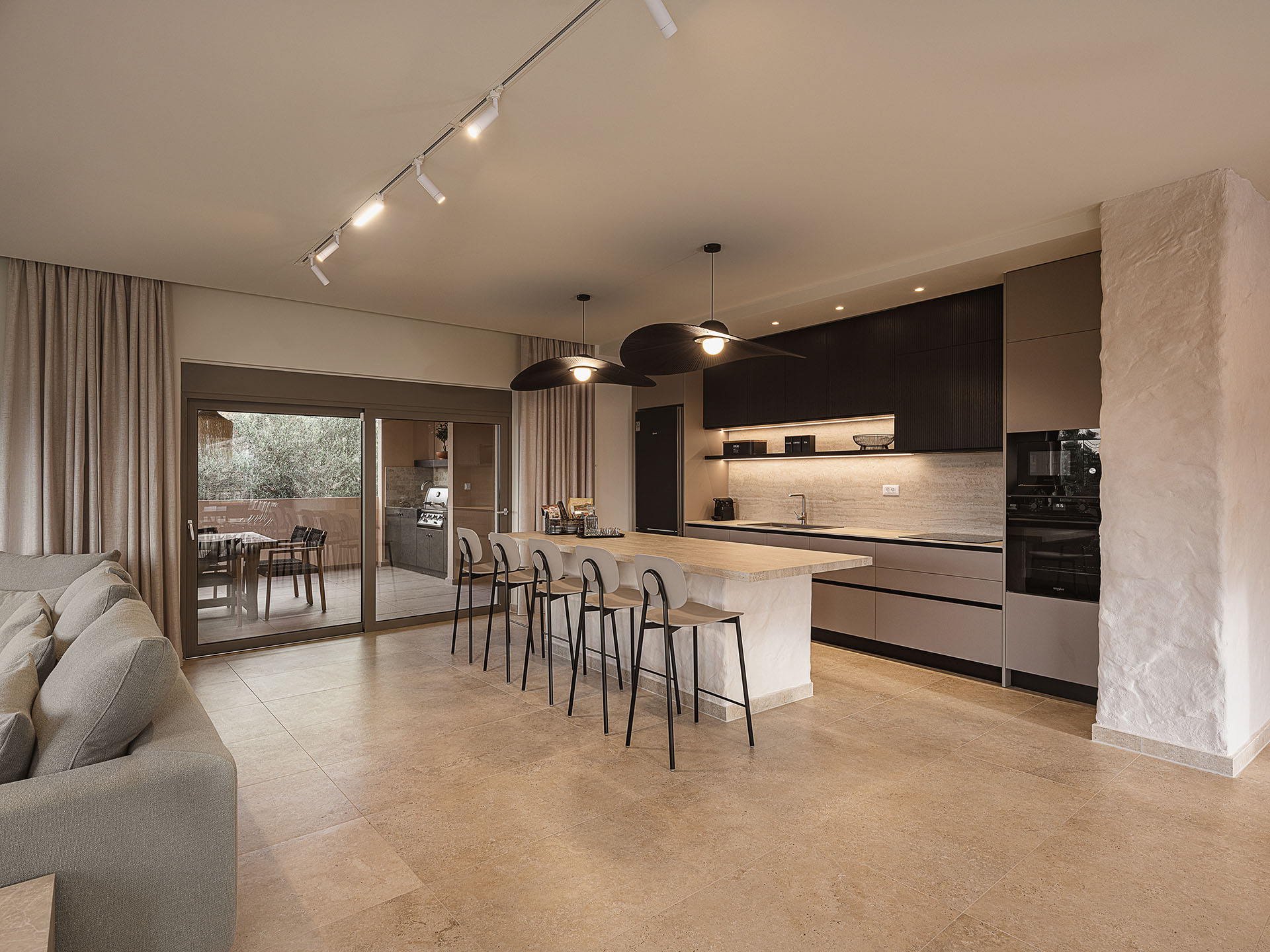 - Fully equipped kitchen with a kitchen island (5 bar stools)